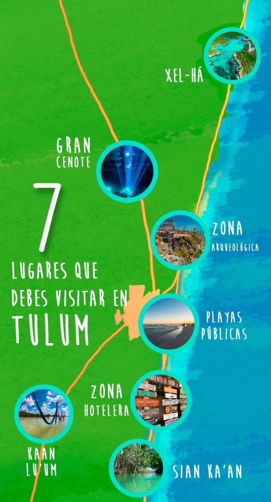 Te compartimos este mapa de Tulum para que ubiques dónde están los principales atractivos naturales de este lugar de la Riviera Maya: